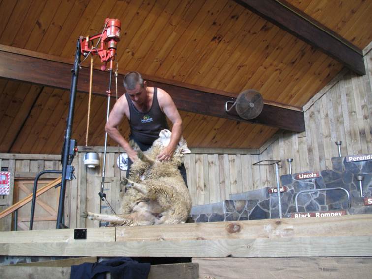 Далее на ферму, где показали, как овец стригут. И как местная собака
